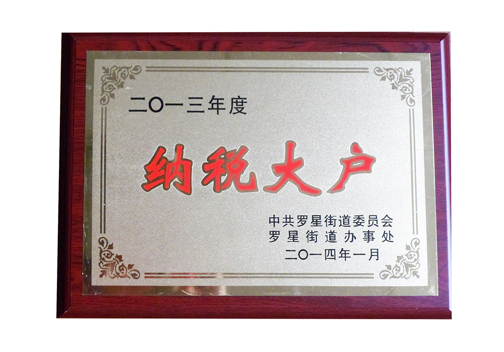 2014年1月,公司荣获“2013年度罗星街道纳税大户”