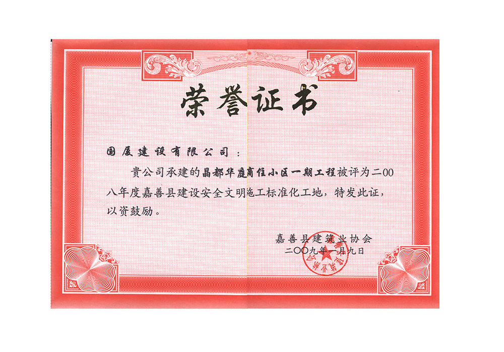 2008年,嘉兴市安全文明标化工地-世纪经典